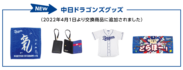 ※ポイント交換の中日ドラゴンズグッズは数量限定の為、なくなり次第終了となります。